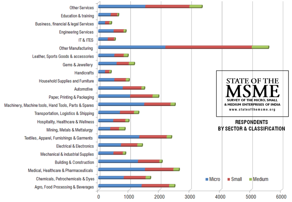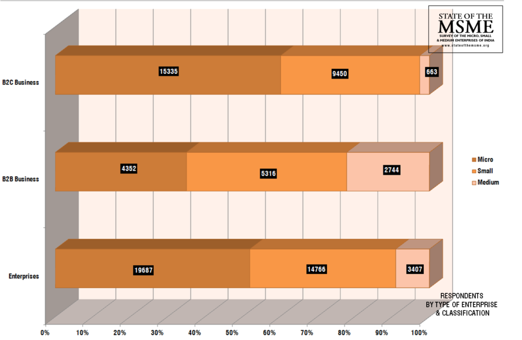 Respondent enterprises were further classified into 19,687 micro units or 52%, 14,766 small enterprises or 39% and 3407 medium enterprises or 9%.